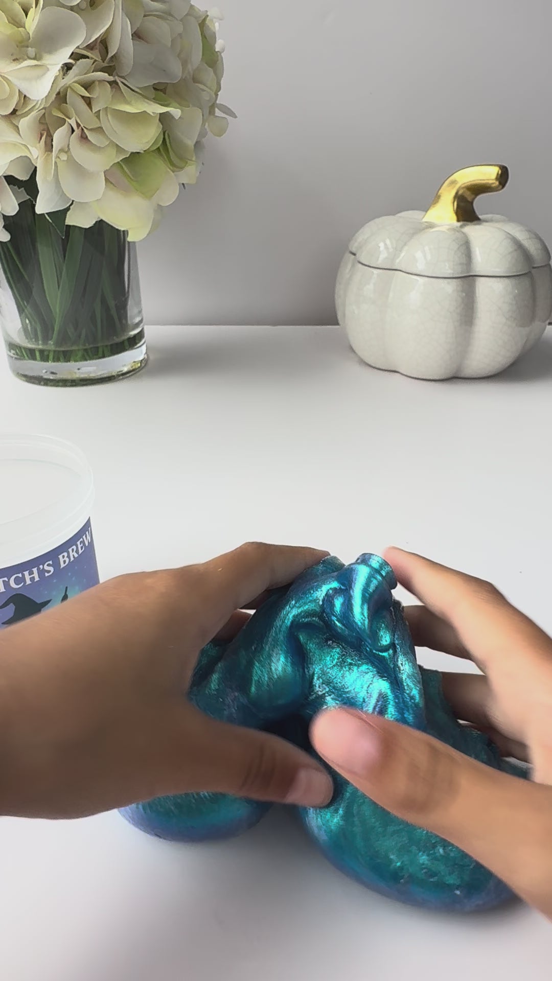 Double, double, toil and trouble! This slime is pure Halloween magic! Witch’s Brew features a clear base infused with a shimmering teal, blue, and green color-changing pigment that shifts beautifully in the light. The scent is a sweet and playful mix of candy and Sugar Kiss, making it smell just as enchanting as it looks.